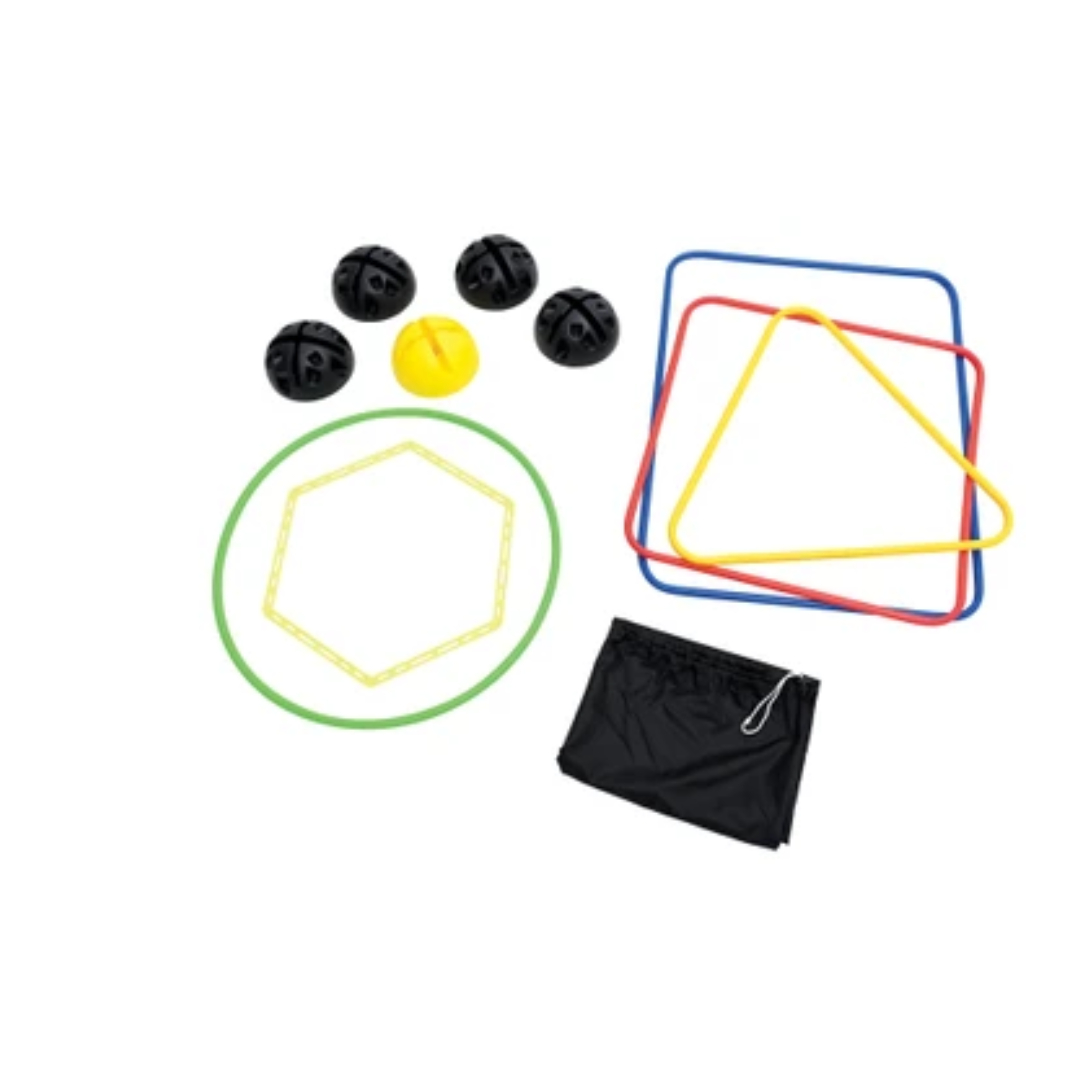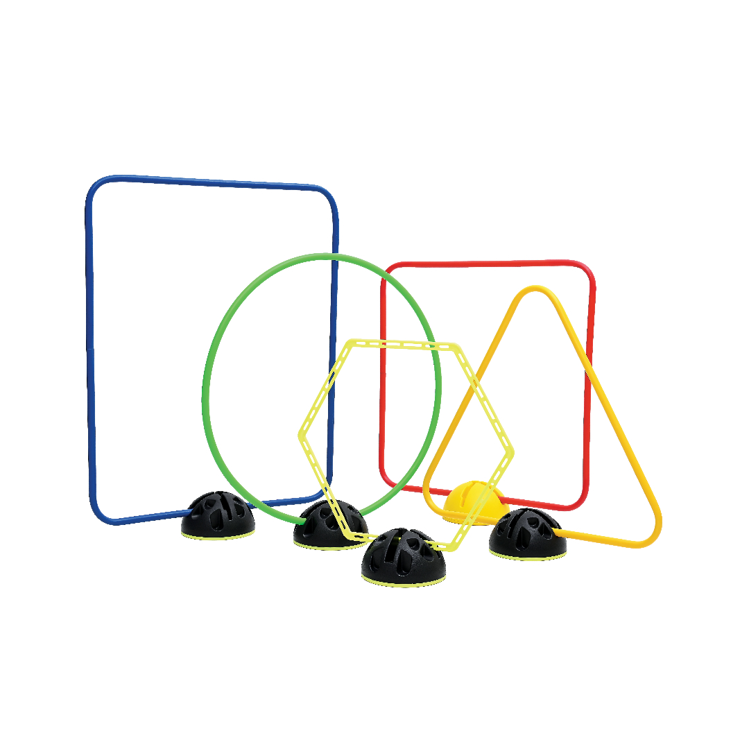 Mängu- ja võimlemisrõngaste komplekt, mis koosneb viiest erinevast kujust – ruudukujuline, ristkülik, ring, kuusnurk ja kolmnurk –, mis on valmistatud 20 mm läbimõõduga plasttorudest. Komplekti kuulub ka viis plastalust, mis pakuvad igale kujule stabiilset tuge.