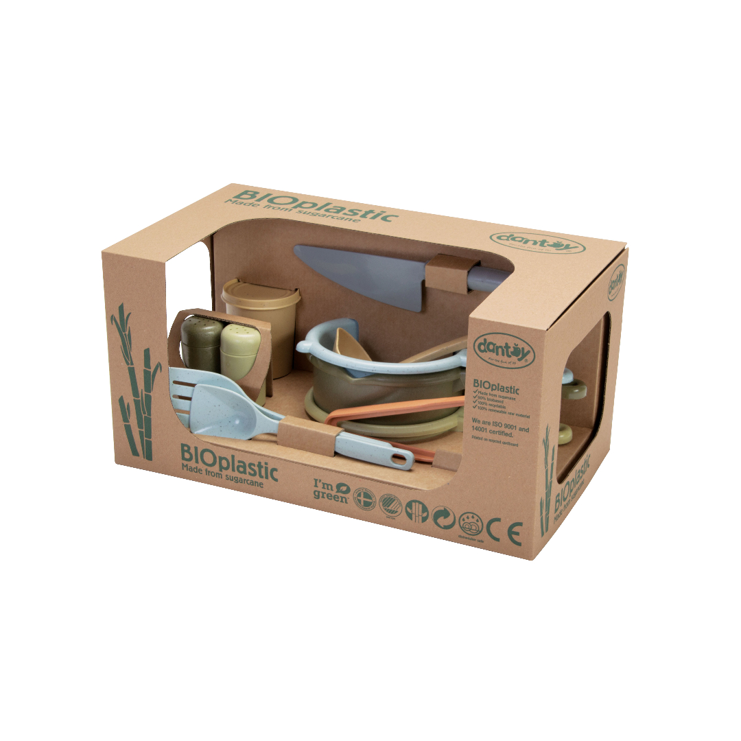 Keskkonnasõbralikud komplektid on valmistatud vastupidavatest ja keskkonnasõbralikest materjalidest – suhkruroost saadud bioplastist. See tähendab, et toode on 100% korduvkasutatav ja valmistatud 100% taastuvatest ressurssidest. Iga komplekt võimaldab ohutut rollimängu, toetades motoorsete oskuste, loovuse ja kujutlusvõime arengut. Tänu looduslikele materjalidele ja vastupidavale konstruktsioonile sobivad komplektid ideaalselt nii koduseks kui ka hariduslikuks kasutamiseks. Komplekti