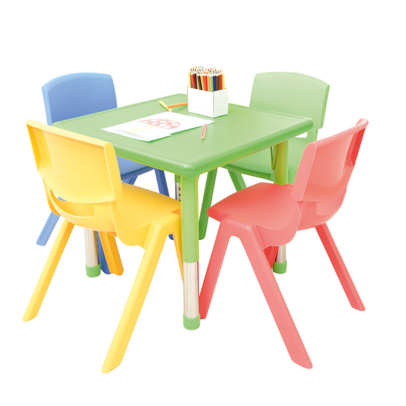 Mänguväljakutele soovitatav Dumi kandiline laud koos nelja Dumi plasttooliga suuruses 3: