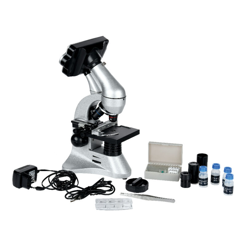 • 5 ettevalmistuse komplekt + 5 tühja slaidi • toiteplokk 180 cm kaabliga • 150 cm USB-kaabel • mooduli mõõtmed koos ekraaniga 15 x 8 cm • mikroskoobi mõõtmed 15 x 16 x 31 cm • kandekott 40 x 26 x 16 cm