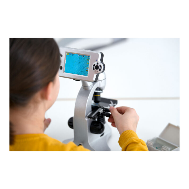 LCD-mikroskoop igapäevaseks kasutamiseks bioloogialaboris. Vooluvõrgust toidetav. Varustatud kahekordse valgustussüsteemiga: loomulik valgus ja LED-valgustus. Suurendus kuni 1600x. 3,6-tolline LCD-ekraan võimaldab mitmel inimesel samaaegselt mugavalt ja hea pildikontrastsusega vaatlust teha. Sisemälu 128 MB, laiendatav SD-kaardi abil (ei kuulu komplekti). Okulaar 10x, 16x. Objektiivid: 4x 10x 40x. Suurendus 40x, 100x, 400x; 64x, 160x, 640x.