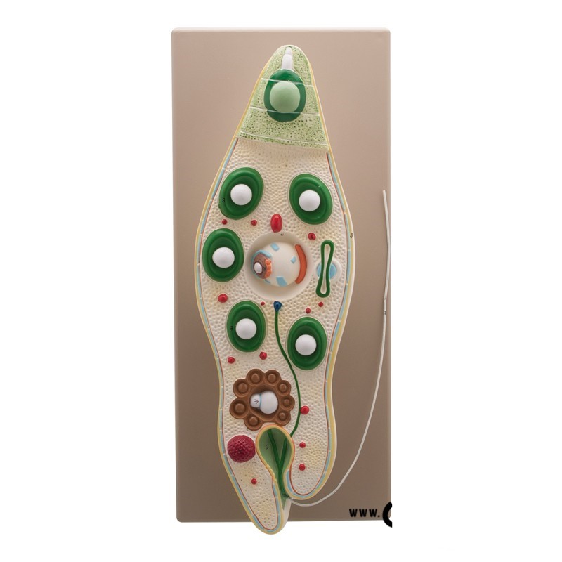 Euglena (poolakeelne nimi: klejnotka) õppemudel, valmistatud plastikust, värviline, kolmemõõtmeline, kinnitatud alusele. Euglena on üherakuline organism, protistide hulka kuuluv organism, kellest räägitakse koolitundides sageli oma huvitava siseehituse tõttu – see sisaldab kloroplaste ja on kiskja, mistõttu on selle organismi klassifitseerimisega pikka aega probleeme olnud. Kogu õppevahendi mõõtmed on: 33 x 25 x 5 cm.