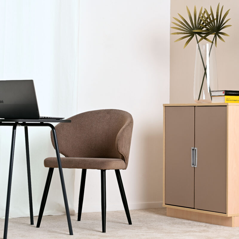 Elegantne ja mugav tool ainulaadse disainiga. Valmistatud kvaliteetsetest materjalidest, see on vastupidav ja kauakestev. Polsterdatud pehme ja kergesti hooldatava polüesterkangaga (kašmiir). Mustad metalljalad pakuvad stabiilsust ja lisavad modernset hõngu.