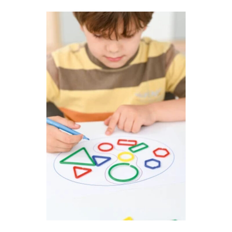 40 plastklotsi 5 kuju ja 2 suuruses loendamiseks, sorteerimiseks ja pikkadeks kettideks ühendamiseks. Ideaalne mängudele, mis arendavad loogilist mõtlemist. • 4 värvi • mõõtmed 3,5 x 3 cm kuni 7 x 3,5 cm