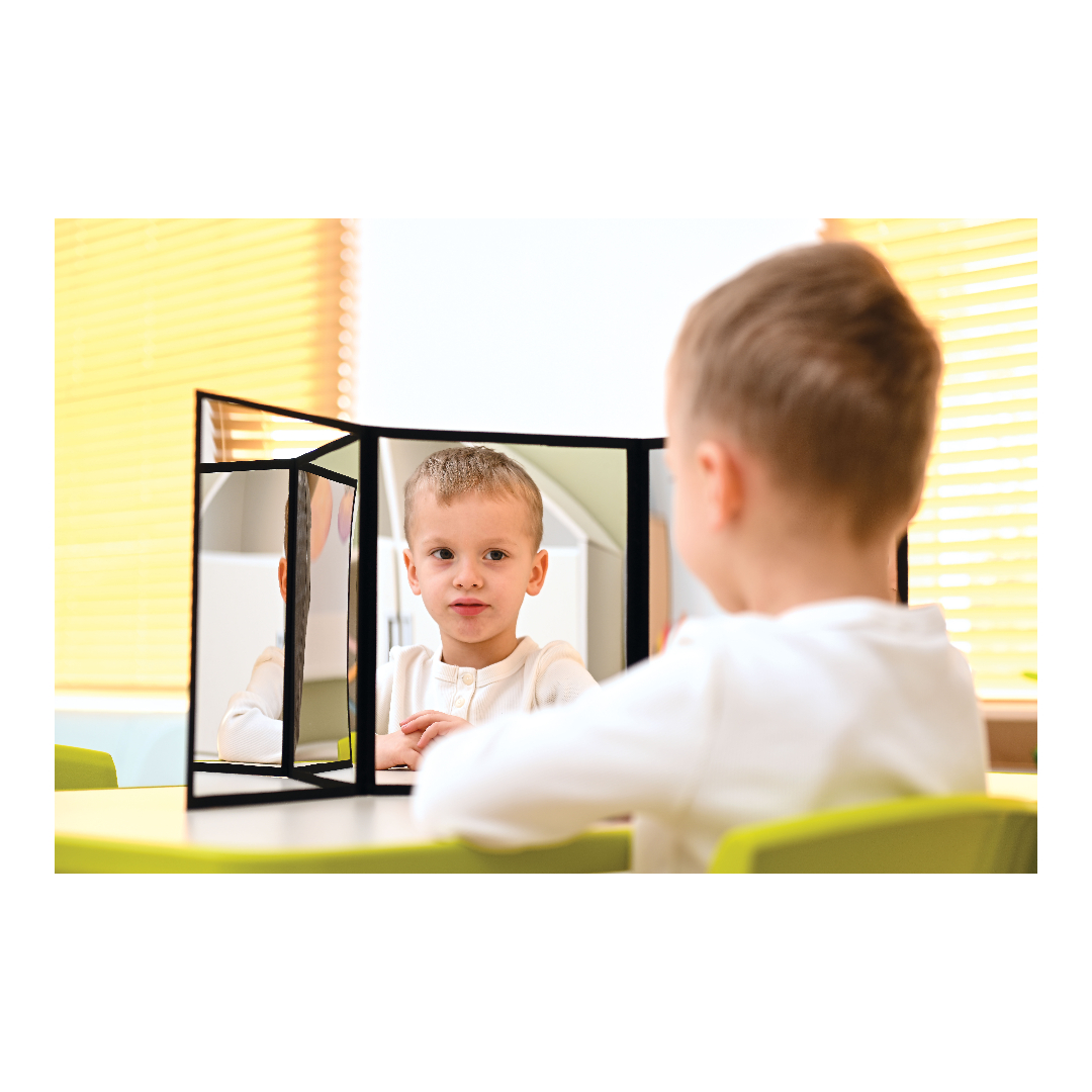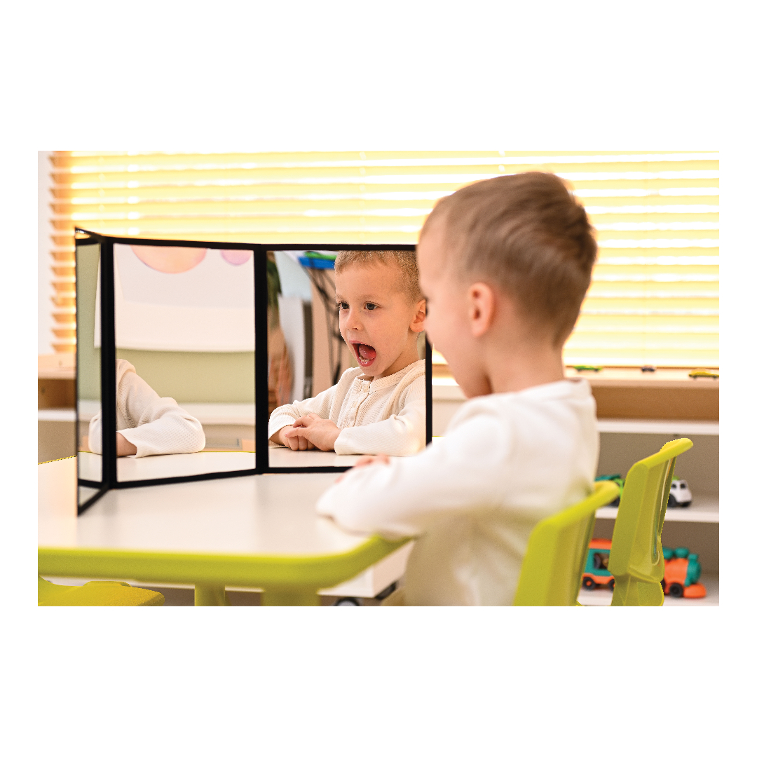 Kaasaskantav, kokkupandav akrüülpeegel, mis lahtivoldituna võimaldab nägu samaaegselt vaadelda erinevatest vaatenurkadest. See hõlbustab huulte, keele ja teiste kõneaparaadi osade liikumise jälgimist, mis on logopeedias ülioluline. See võimaldab ka keele õiget asendit täpselt harjutada, aidates seeläbi parandada keeruliste helide hääldust.