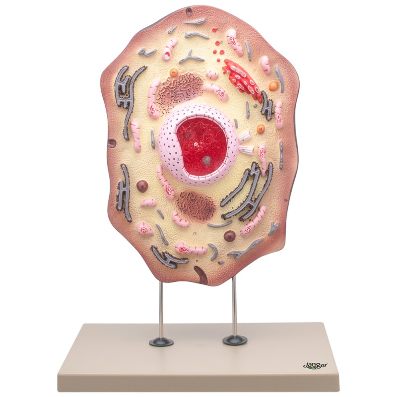 Suur demonstratiivne loomaraku mudel, mis on valmistatud vastupidavast plastist ja kinnitatud alusele. Kolmemõõtmeline ja selge. Suurendus 20 000x. Mudel näitab organelle (st tuuma, endoplasmaatilist retiikulumit, mitokondreid, ribosoome, eelkõige polüsoome ja Golgi aparaati), tsentrioole, lüsosoome ja lipiidvakuoole. Golgi vesiikulite ekstrusiooni nähtav protsess ja pinotsütoosi tunnused, mida demonstreerivad rakudünaamika abil.