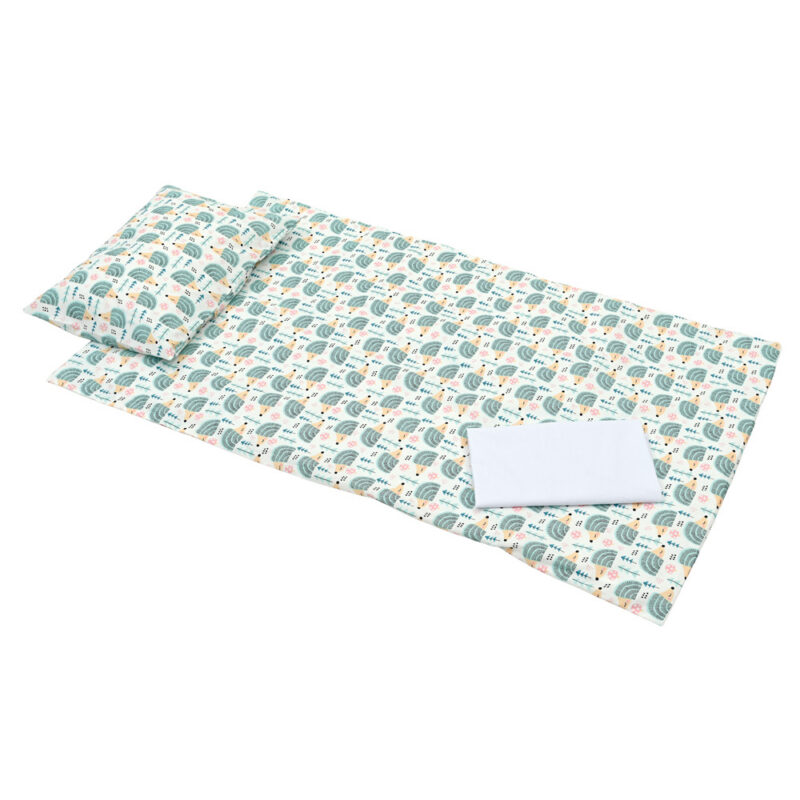 Mustriga lasteaia voodipesukomplekt, mis koosneb tekikotist, padjapüürist ja linast.