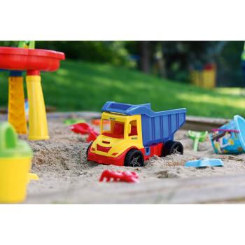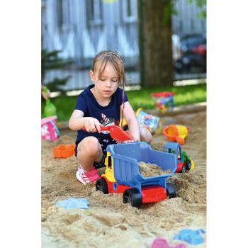 Liivamänguasjade komplekt sisaldab 6 ämbrit, 4 komplekti rehasid labidaga, 4 väikest vormi, 8 suurt vormi, 3 komplekti veoautosid haagiste ja ekskavaatoritega, 1 veelauda 4 elemendiga ja 3 kastekannu.