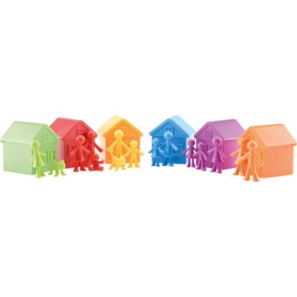 Kuues kujus ja kuues värvitoonis kummist loendureid, mis kujutavad pereliikmeid, loendamiseks ja sorteerimiseks. Suurepärane abivahend loogilist mõtlemist arendavate mängude jaoks. • 72 tk • kõrgus 3–6 cm