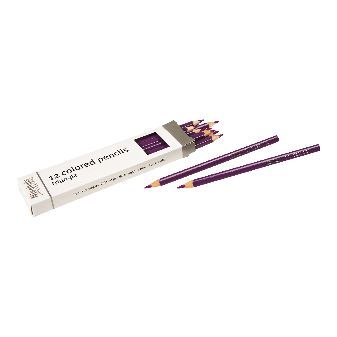 Ühevärviliste värvipliiatsite komplekt. Nende kolmnurkne kuju teeb värvipliiatsite ja -pliiatsite õige hoidmise õppimise lihtsaks. Värvipliiatseid saab kasutada koos teiste Montessori materjalidega. Ühes karbis on 12 värvipliiatsit. • Värvipliiatsi läbimõõt: 8 mm.