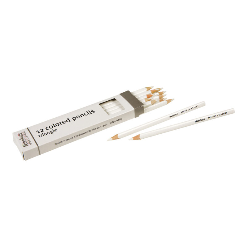 Ühevärviliste värvipliiatsite komplekt. Nende kolmnurkne kuju teeb värvipliiatsite ja -pliiatsite õige hoidmise õppimise lihtsaks. Värvipliiatseid saab kasutada koos teiste Montessori materjalidega. Ühes karbis on 12 värvipliiatsit. • Värvipliiatsi läbimõõt: 8 mm.