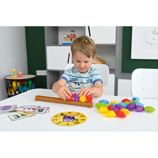 Hariv mänguasi, mis aitab teie lapsel arendada lugemisoskust 1-st 10-ni (kaasa arvatud tagurpidi), mõista numbrite vahelisi seoseid ning sooritada lihtsaid liitmis- ja lahutamistehte. Teie lapse ülesanne on asetada figuurid oksal õigele kohale, tegevuskaartidel näidatud numbrile, ja võrrelda antud numbreid esindavaid figuure. Rohkem tegevusnäiteid leiate komplektiga kaasasolevast juhendist. Karbi
