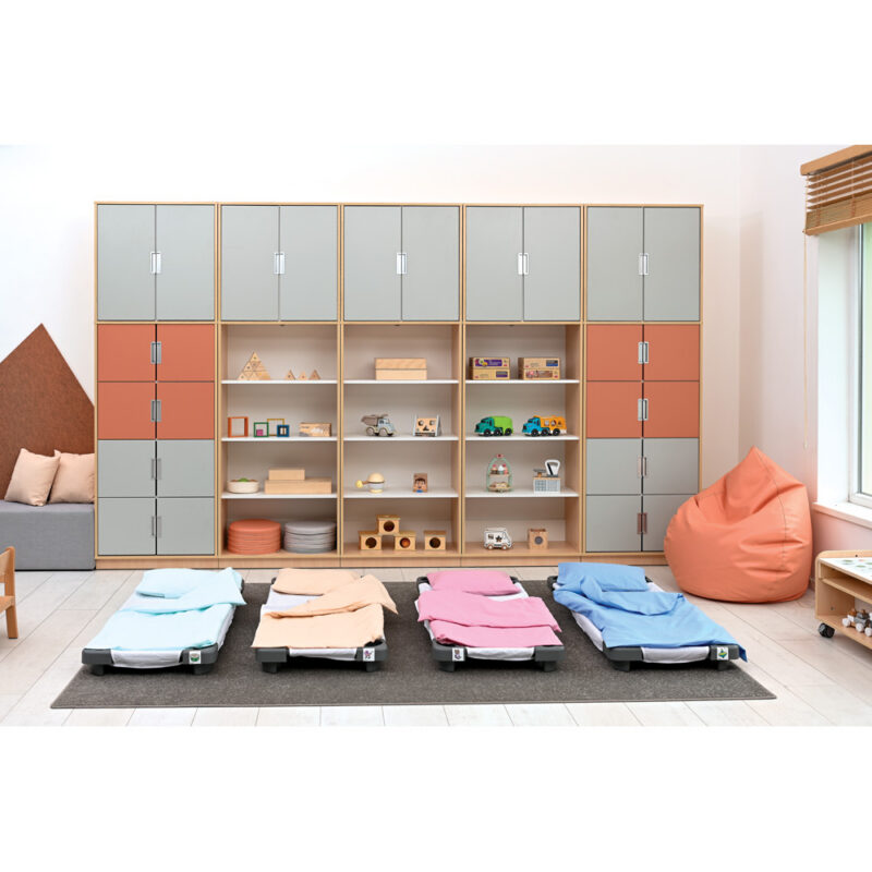Mööbel on valmistatud 18 mm paksusest laminaatplaadist heledates vahtra- ja valgetes toonides, 18 mm paksused esiküljed on kaetud vastupidava termoplastilise spooniga.