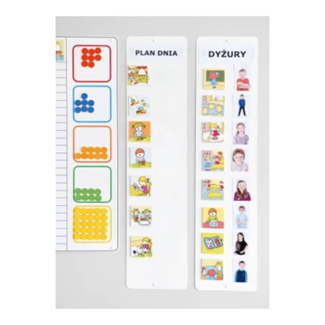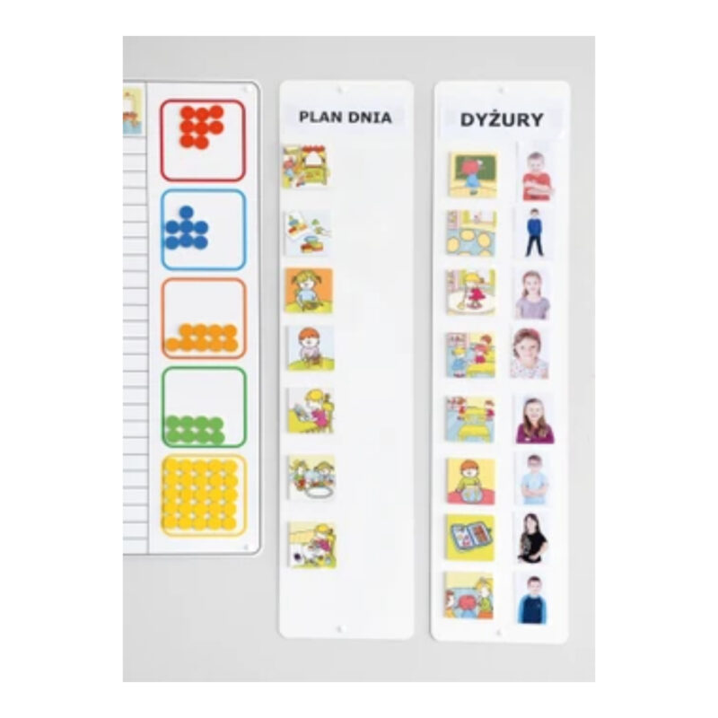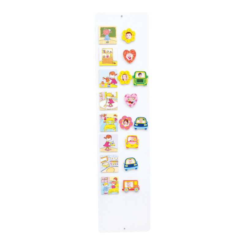 Metalltahvel, mida saab riputada vertikaalselt või horisontaalselt. See võimaldab klassiruumis infot visualiseerida. Seda saab kasutada näiteks õpetaja planeeritud tegevuste esitamiseks antud päevaks või nädalaks planeeritud vahetuste esitamiseks. Illustratsioonid müüakse eraldi (036052, 199317 ja 036053). • Mõõtmed: 24 x 100 cm