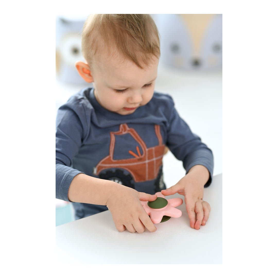 Vurr on valmistatud lapsekindlast silikoonist. Iminapa abil saab selle kinnitada igale siledale pinnale – seinale, põrandale, lauale või aknale. See aitab arendada ja treenida käe-silma koordinatsiooni. Vurr on saadaval õrnades roosades ja rohelistes toonides.