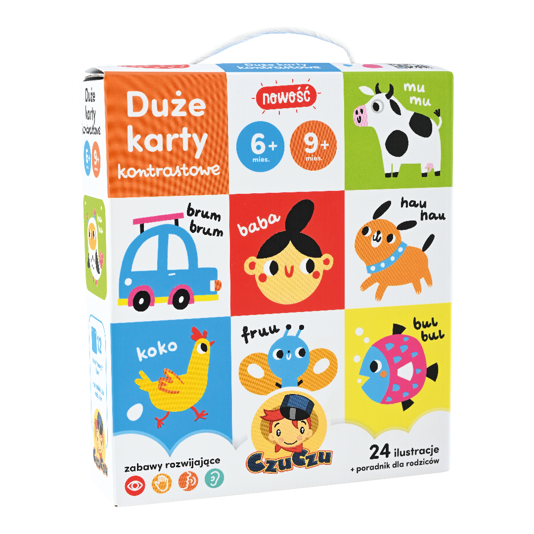 Kahepoolsed, kontrastsed kaardid toetavad teie lapse harmoonilist arengut. Illustratsioonid on kohandatud nende areneva nägemise ja oskustega. Kaarte saab kasutada nii eraldi kui ka brošüürina. Kaasas on juhend näidistegevustega kaartide kasutamiseks.